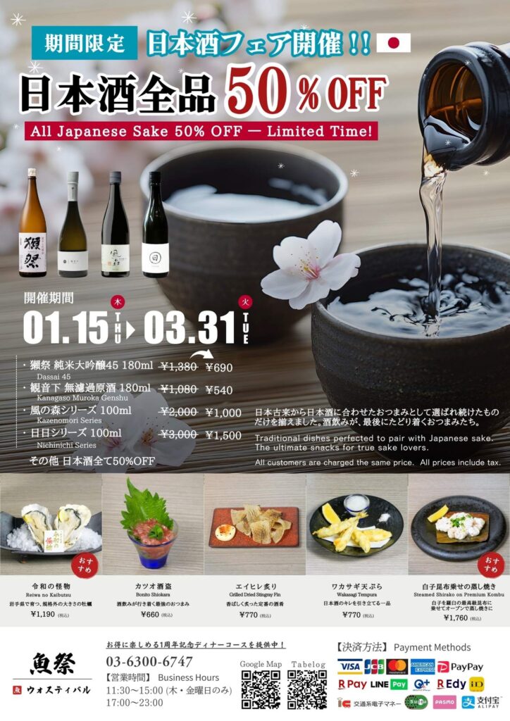 During this period, all Japanese Sake served in our restaurant will be available at 50% OFF.